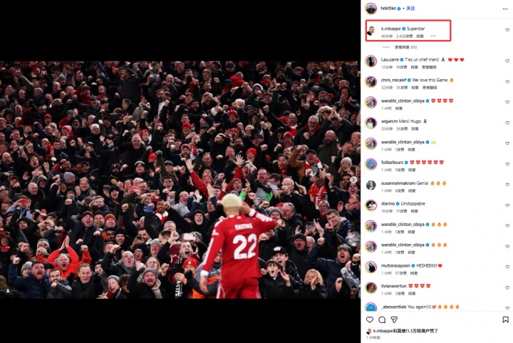 面对纽卡上演梅开二度!埃基蒂克更新社媒,姆巴佩评论:超级球星