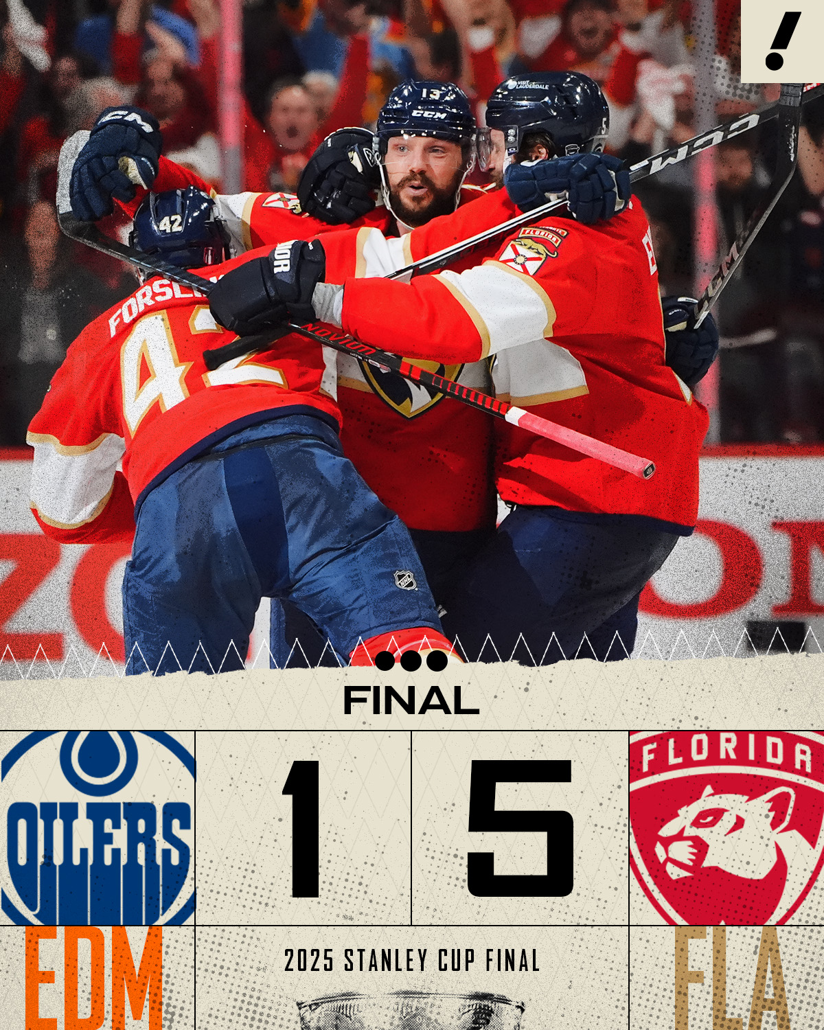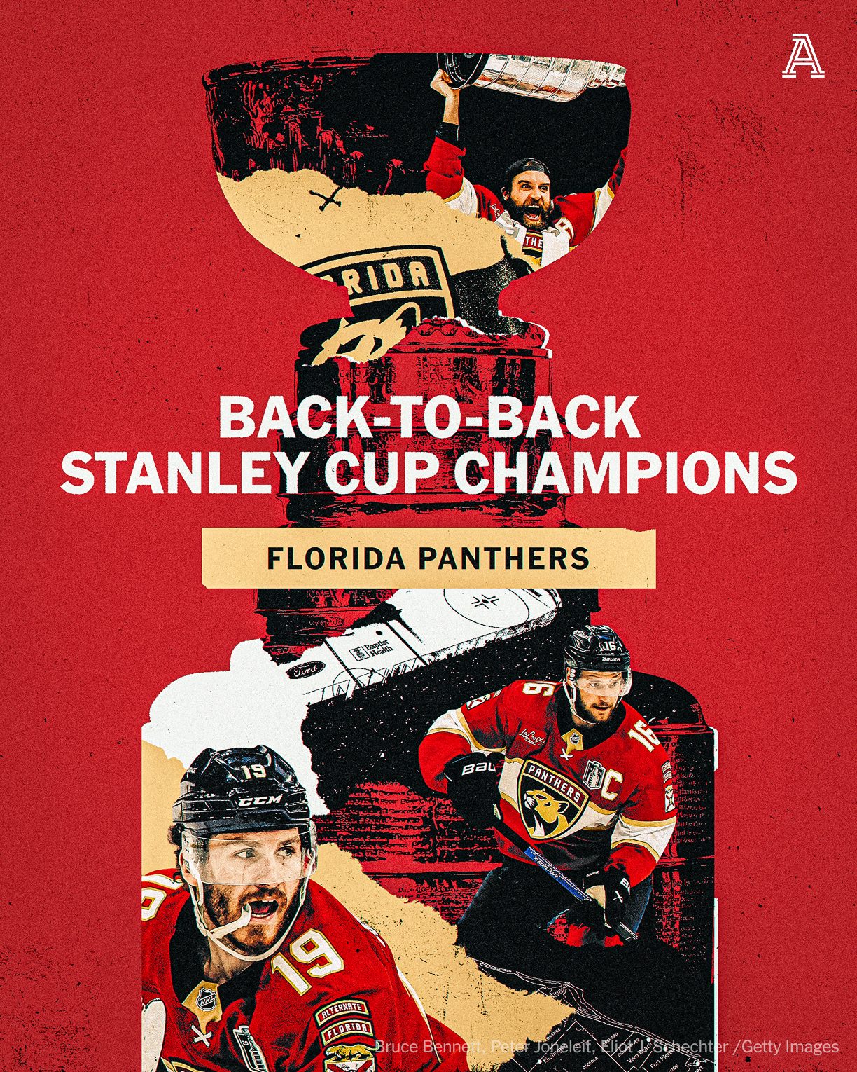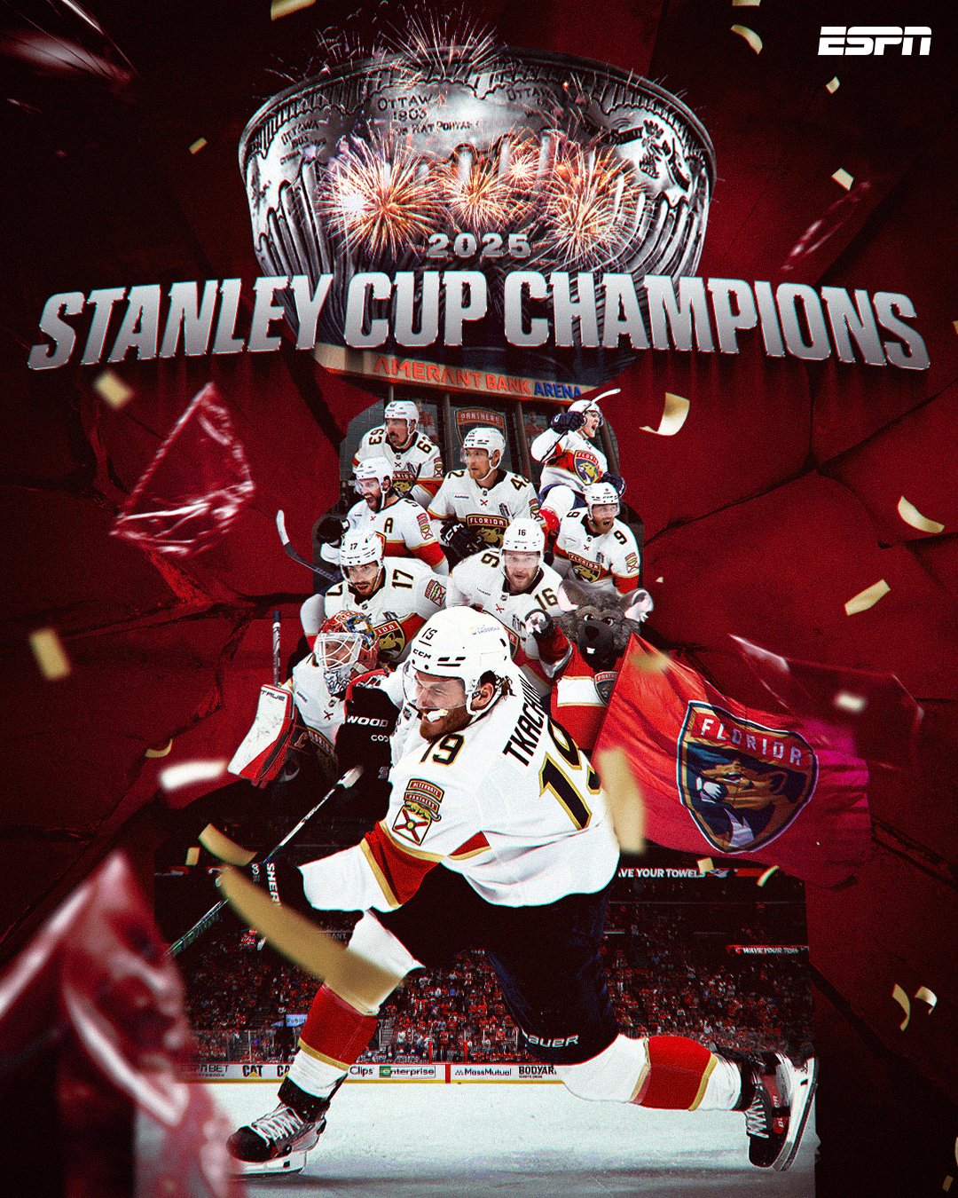 球迷直播06月18日讯 NHL总决赛G6,佛罗里达美洲豹5-1击败埃德蒙顿油人,大比分4-2实现卫冕夺得队史第二冠。 这是两队连续第二年在总决赛相遇,去年油人在0-3落后的情况下,连追三局拖入抢七。但抢七美洲豹顶住压力,2-1击败油人拒绝逆转,夺得队史首冠。美洲豹今年没有给油人太多机会,萨姆-莱因哈特在G6连进四球帮助球队捧杯。美洲豹球员萨姆-本内特获得FMVP(康恩-思迈斯奖,Conn Smythe Trophy),他在季后赛中共进球15个排在第一位。 萨姆-本内特 萨姆-莱因哈特 美洲豹连续三年打进总决赛,2023年憾负维加斯金骑士后,连续两年夺冠。油人再次无缘冠军意味着加拿大球队已32年没能捧起斯坦利杯(1993年蒙特利尔加拿大人)。