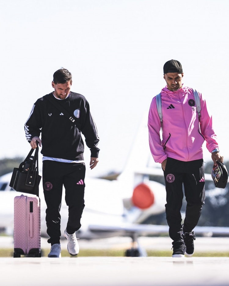 球迷直播2月7日讯 北京时间2月8日8点,迈阿密国际将在友谊赛中对阵瓜亚基尔巴塞罗那。 迈阿密国际全队已经启程前往厄瓜多尔,准备参加这场友谊赛,俱乐部官方社媒晒出球员们启程的照片,梅西、苏亚雷斯同框出镜。